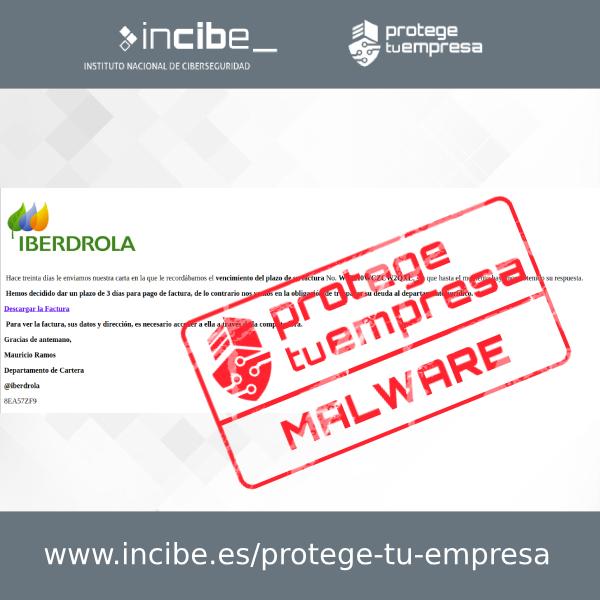 Se ha detectado una campaña de correos electrónicos fraudulentos suplantando a la compañía Iberdrola y cuyo objetivo es que el usuario instale malware en su equipo.